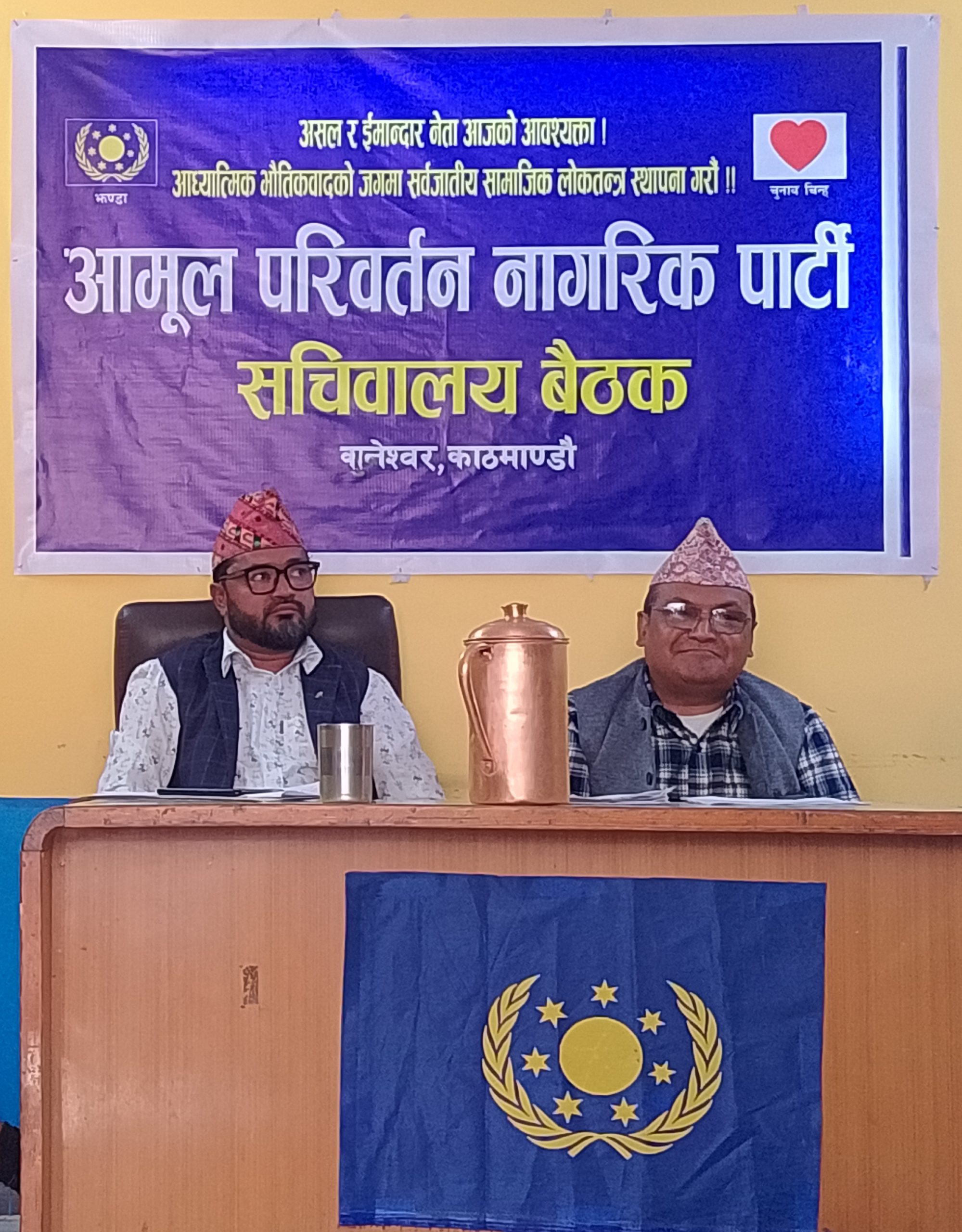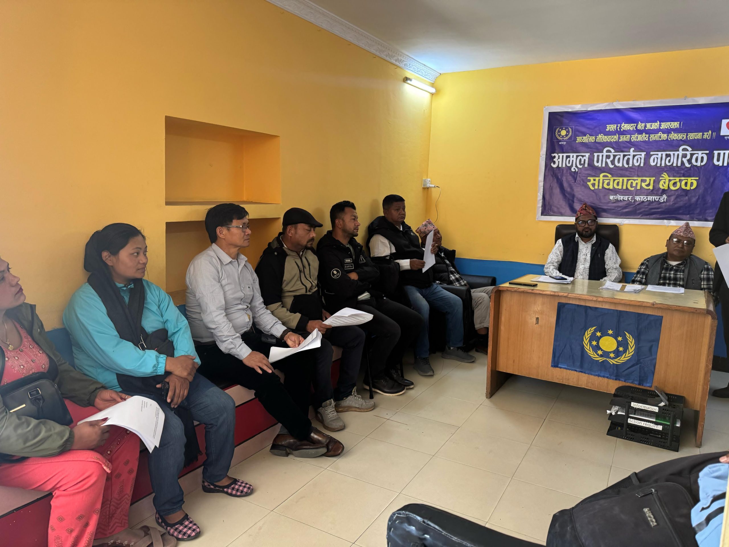 आमूल परिवर्तन नागरिक पार्टीको सचिवालय तथा काठमाडौंमा उपलब्ध केन्द्रीय सदस्यहरूको बैठक सम्पन्न भएको छ।