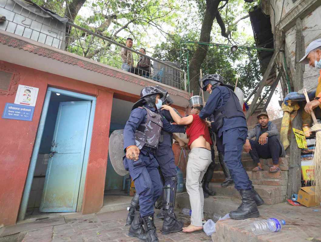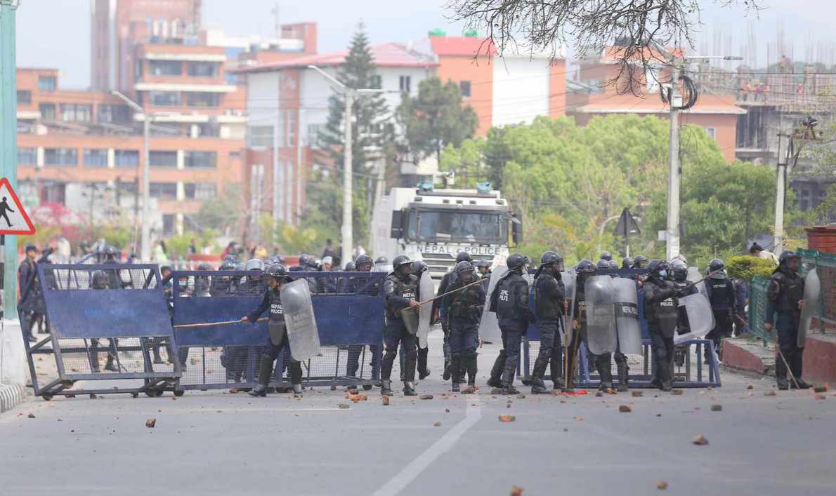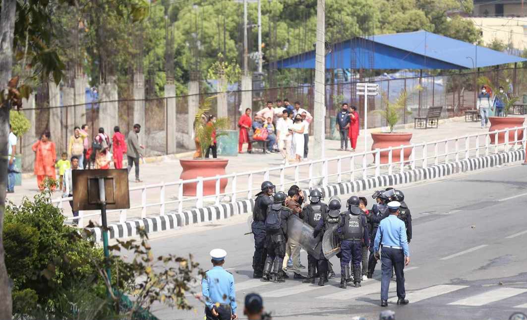 जिल्ला प्रहरी परिसर काठमाडौँका प्रवक्ता एवं प्रहरी उपरीक्षक नवराज अधिकारीले निषेधित क्षेत्र तोड्न खोज्ने प्रदर्शनकारीलाई रोक्न खोज्दा प्रहरी जवान घाइते भएको बताए।