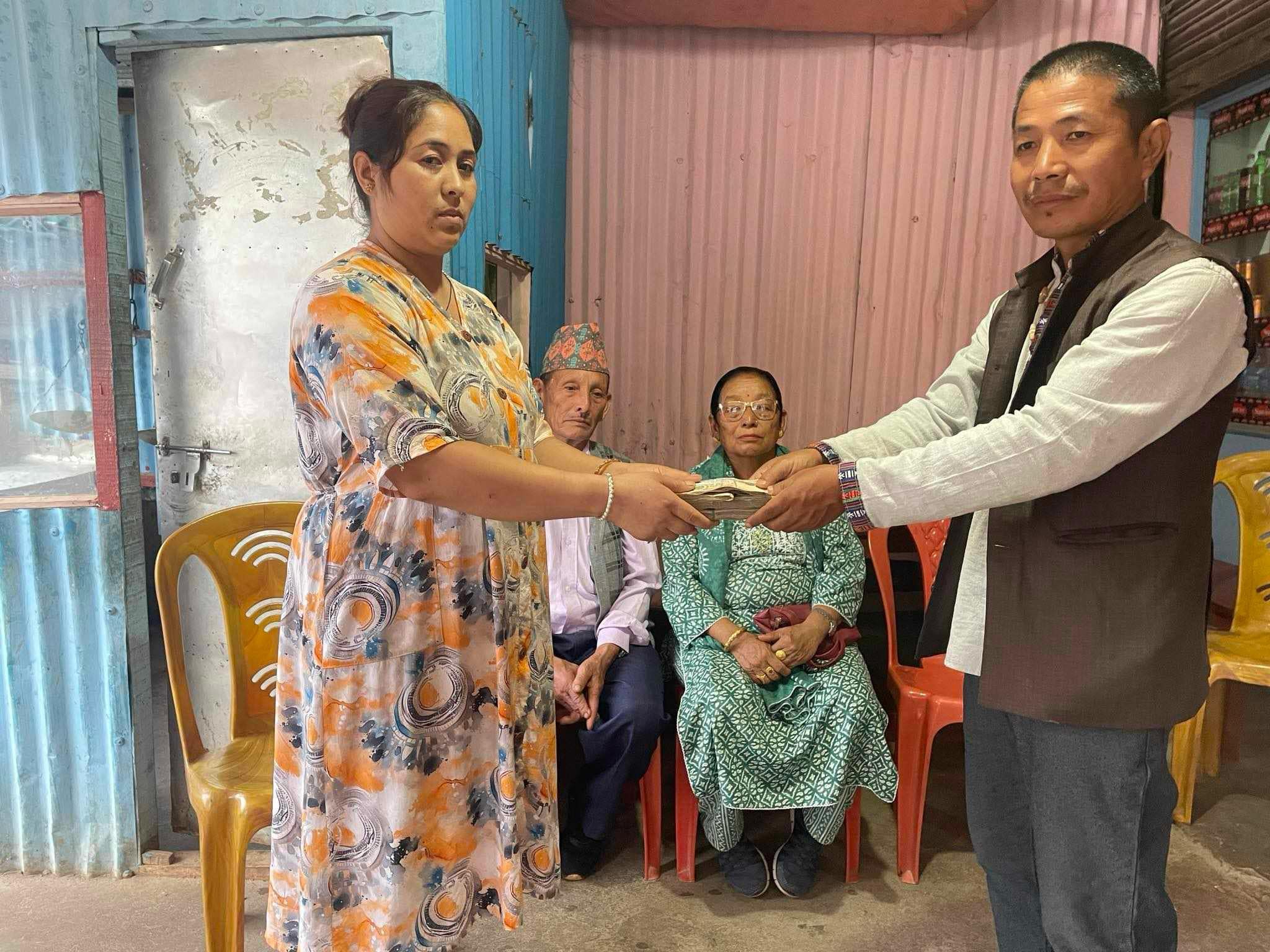 आर्थिक अवस्था कमजोर भएका कारण फिदिम ४ निबासी हाल युकेमा रहेका नेपालीले रकम संकलन गरेर उहाँलाई हस्तान्तरण गरेको हो ।